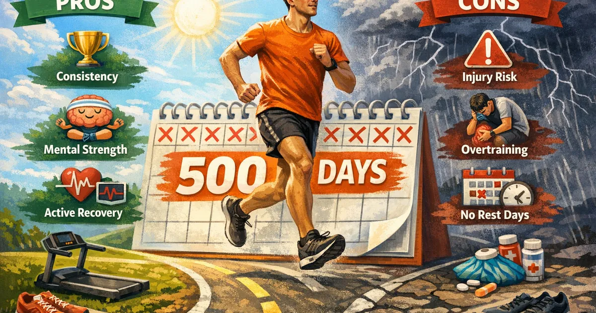 Running streaks develop extraordinary consistency and mental discipline. For some runners, daily running works well—the short easy runs keep them loose and consistent. But streaks carry real risks: you can't take a rest day when you need one, and the psychological pull to maintain a streak can override smart training decisions. If you try streaking, commit to ending it if injury strikes. A streak isn't worth long-term damage.