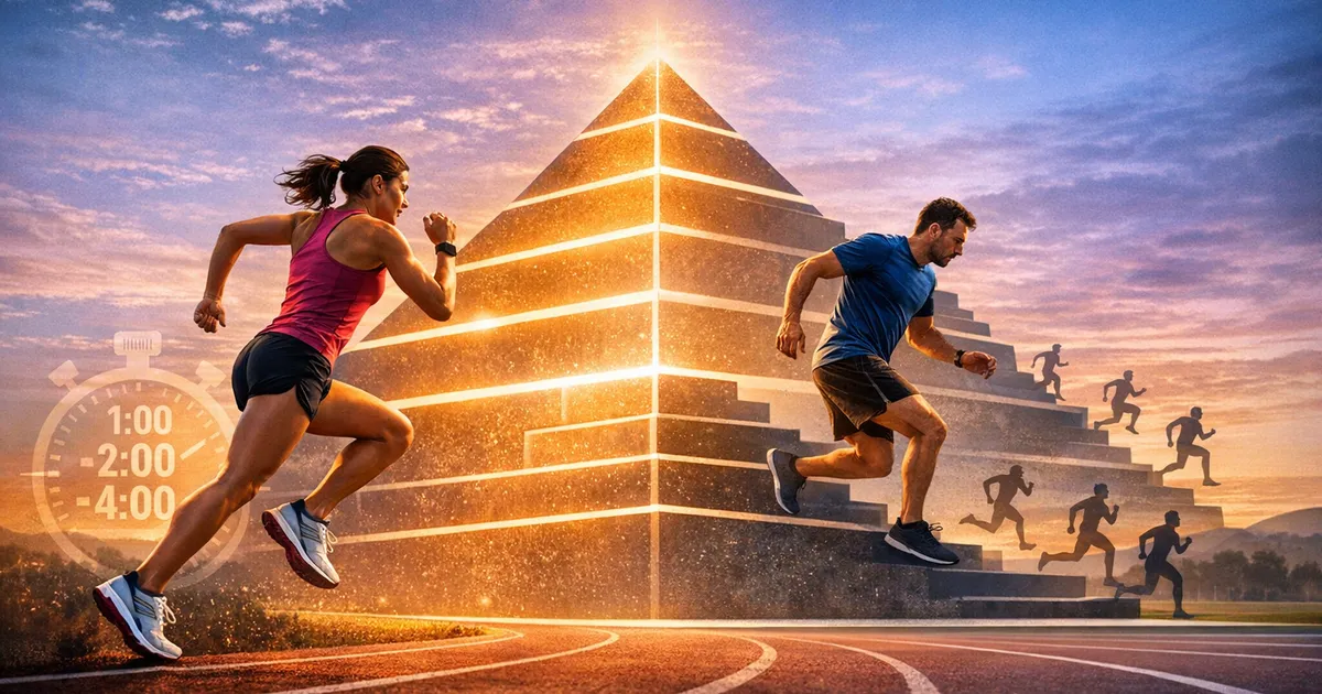 Master the pyramid workout—a structured interval session that builds to a peak and descends. Learn variations, pacing, and how to program pyramids for racing success.