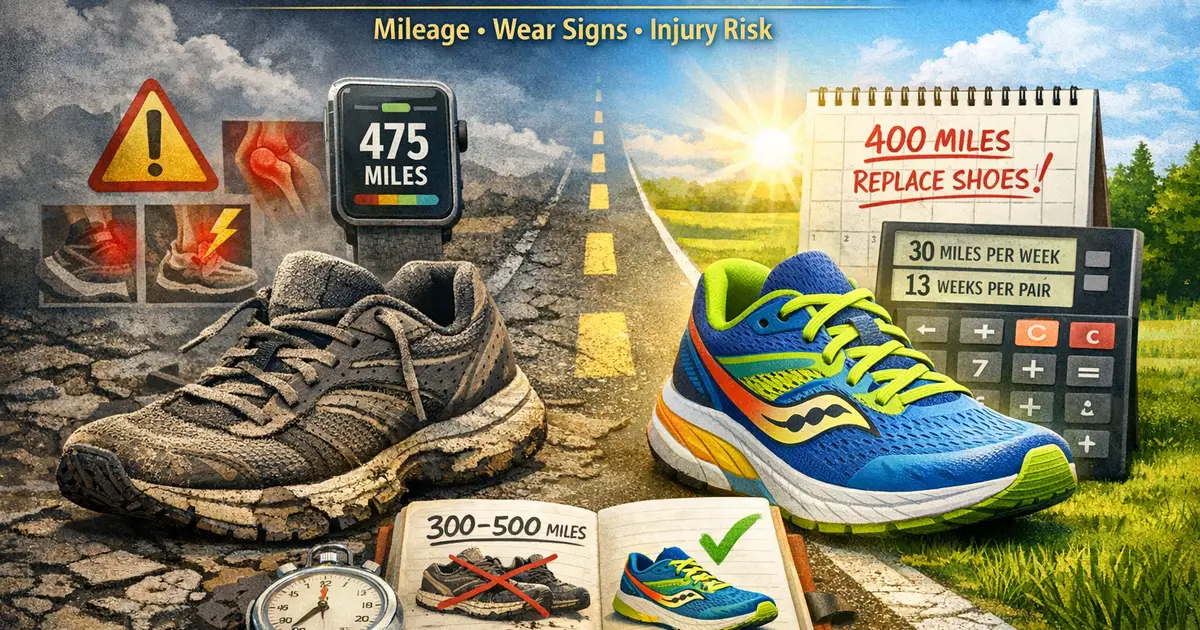 Know exactly when your running shoes need replacing. Learn the mileage guidelines, physical signs of wear, and how worn shoes increase injury risk.